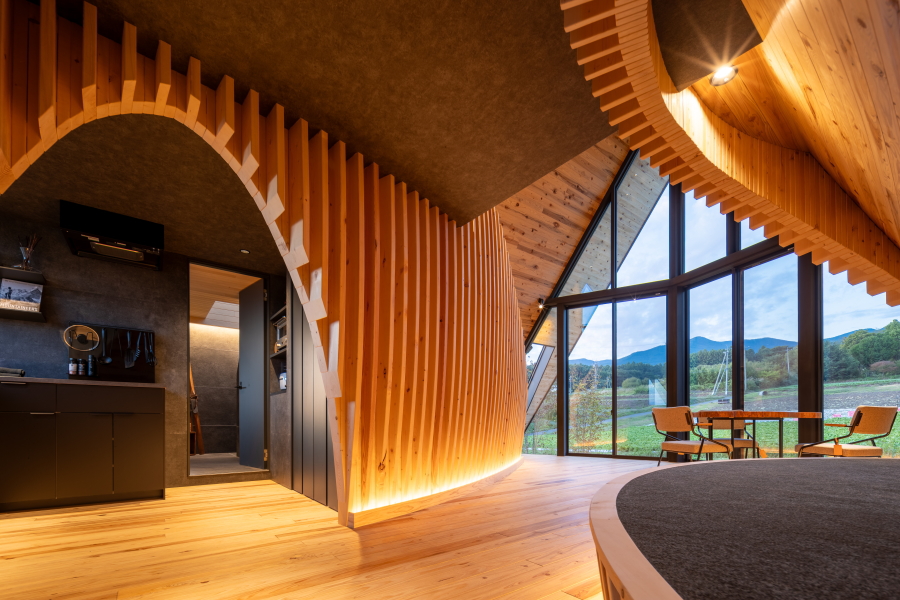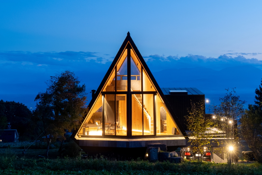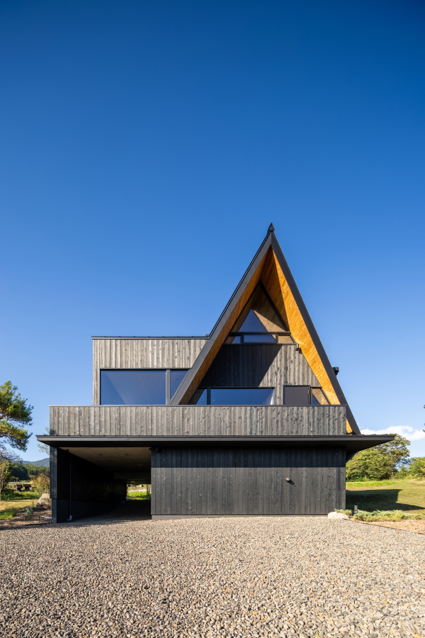 北米を中心に、世界中で建設されている三角の家(A-frame工法)を採用したstyle-Aです。大きな開口部から絶景を眺め、優雅なひとときを過ごすためのぜいたくな空間を実現しました。邸宅と呼ぶにふさわしいあこがれの住まいとなりました。